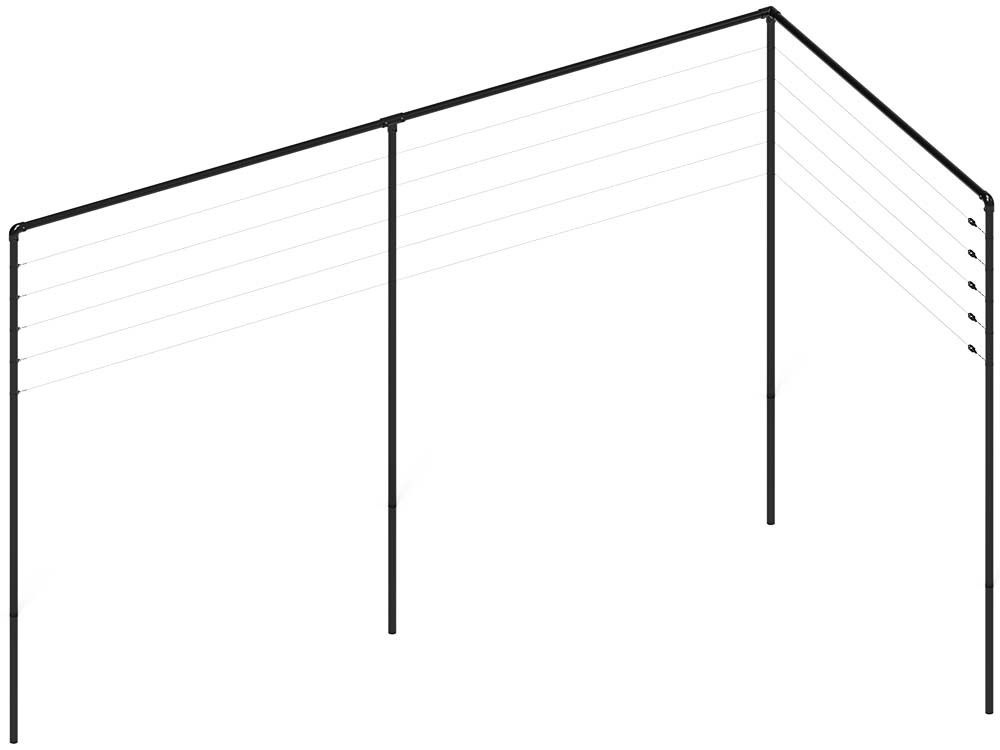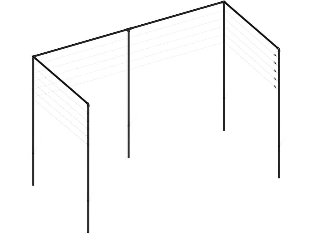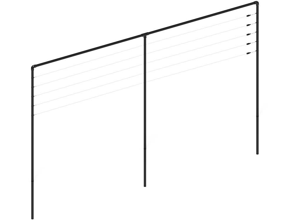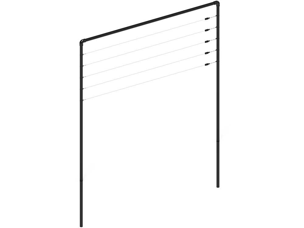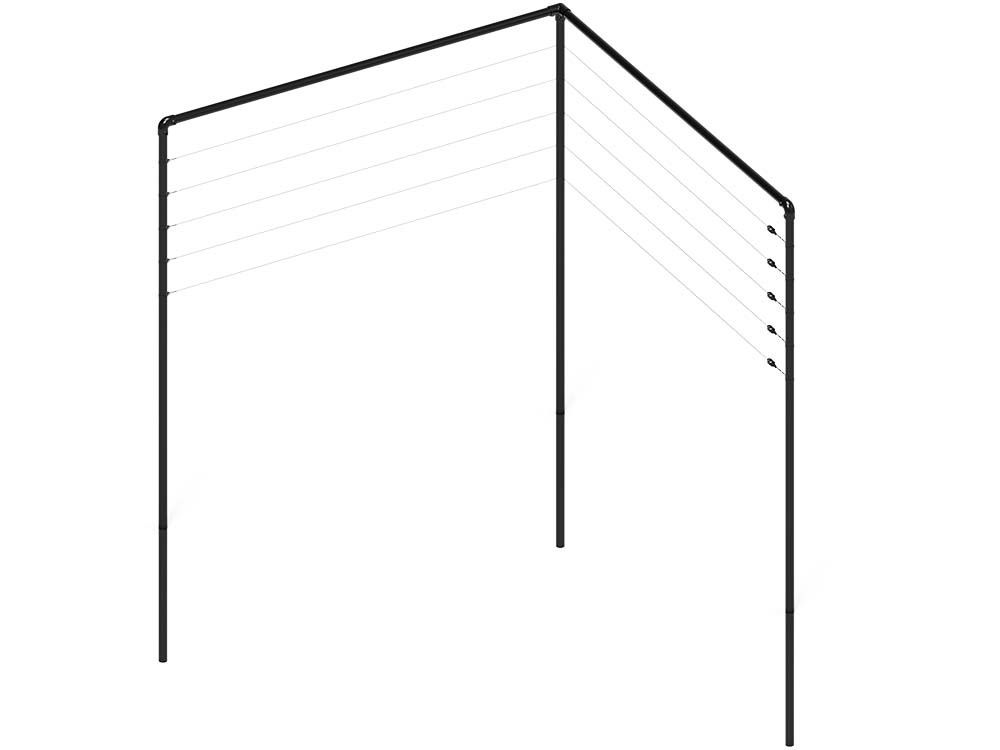 Alle Pfosten und Beschläge für die Spalierkonstruktion sind verzinkt. Wenn Sie ihnen auch eine Farbe geben möchten, werden sie pulverbeschichtet. Dadurch wird sichergestellt, dass die Konstruktion nicht rosten kann. Bei der verzinkten Version wird der Spanndraht des Spaliers in schwarz geliefert. Die Beschichtung sorgt dafür, dass der Pfosten nicht beschädigt werden kann, was die Lebensdauer des Spaliergestells erhöht. Die Eisenpfosten des Spaliers sind schwarz; diese Farbe verleiht der Spalierkonstruktion ein elegantes und modernes Aussehen.