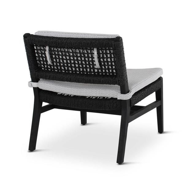 3. Loungesessel Naomi | Teak ebony | schwarzes Geflecht & Kissen grau